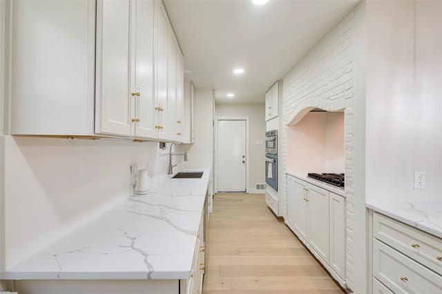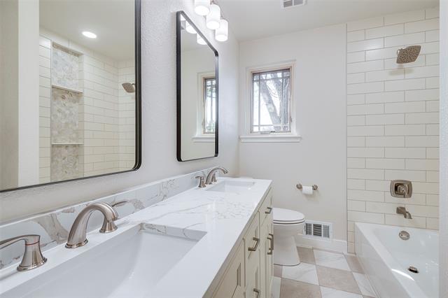 This elegant, East Dallas gem has been meticulously remodeled for any discerning buyer! This home has been reimagined from top to bottom! No expense was spared on the transformation of this 3 bedroom, 2.5 bath sophisticated beauty! This home is pristine and the many designer touches are highlighted by all the natural light. Whether you have a growing family or love to entertain, this home is perfect for you! As you enter the home you are greeted with beautiful arches, custom features and hand selected designer lighting and fixtures. A custom designed kitchen and a light and airy office-sunroom are just some of the additional touches that make this home unlike any other. The wide plank white oak flooring throughout the home is not only beautiful but easily maintained. The chef's kitchen has been completely remodeled with all new custom cabinets, beautiful quartz counter tops, a hand-picked quartz backsplash, an island with seating, and stainless-steel appliances including a convection oven microwave combination. The primary bathroom is a spa like Zen retreat with new double vanities, beautiful fixtures, quartz counter tops and a custom tiled shower. The Jack & Jill bathroom follows suit with a new vanity, double sinks, and beautiful fixtures, and a custom tiled shower bath combo with a large shampoo niche. The half bath is a new addition and a must see with custom paint and beautiful fixtures. The primary bedroom has a large walk-in closet. All bedrooms are good sized with ample closet space and boast the same wide plank flooring as the rest of the home. The backyard features new and mature landscaping, and a large grass area! All of this as well as energy efficient Pella windows, all new plumbing, electrical, HVAC, hot water heater and roof. Great location near the Dallas Arboretum, major highways, and the neighborhood elementary school. Don’t miss this beautiful home!