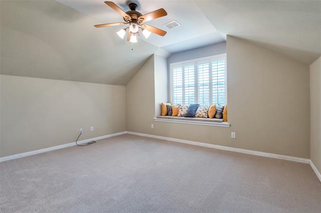MOVE IN READY GOLF COURSE HOME located on the 14th Fairway in the #1 rated Active Adult Community in DFW Heritage Ranch Golf and Country Club. This recently updated 1.5 Story popular Pecos Floor Plan has 3 bdrm, 2 bath and is a great floor plan. Recent updates include a brand-new roof Nov. 25, large kitchen sink and faucet Nov. 25, HVAC 2024, water heater 2020, LVP flooring and fresh paint 2023. The two-car garage has space for a golf cart or work area and floored attic access. As you enter into the foyer, notice an office with glass paned door for privacy. The home has plantation shutters throughout and updated fixtures in every room. Off of the expansive Family Room is the large Primary bedroom with ensuite bathroom that has dual sink vanities and jetted corner tub with a separate shower. A versatile upstairs bonus-bedroom is can also be a fitness room, playroom for grandkids, or theater room. This well maintained, 1 owner home is a must see. The Heritage Ranch community offers an 18-hole championship golf course, tennis and pickleball courts, fitness center, clubhouse with two restaurants and an indoor and outdoor pool. Endless activities and clubs are a part of the Active Adult Community life at the Ranch. Heritage Ranch is an ideal location with country feel located just minutes from shopping, dining and medical facilities.