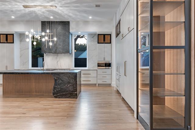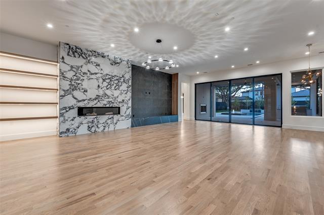 Just completed 5 CAR GARAGE Luxury Custom Transitional Modern with a POOL & Spa; BUILT FOR PRIVACY in heart of Preston Hollow! This Ron Davis Custom Home opens with double iron enter doors to floating glass staircase, showcased through two story window and elevated study at first landing. Dining open to foyer has an exquisite glass walled temperature-controlled wine display with gold wine racks. Catering kitchen and Designers butler's pantry are works of art serving the most particular chefs. Expansive family room with fireplace & hearth, built in shelves and geometric tile TV wall create a focal point from kitchen and morning room with views of outdoor living with new pool & spa beyond. Chef's Dream kitchen features natural stone tops with Wolfe & Subzero Professional Series appliances, a striking Black Stone & Wood Island and geometric tile wrapped vent hood + Illuminated cabinet displays. Master retreat is down with fireplace & built in display shelving, a Spa Bath with free standing tub, his & her vanities & large custom Wardrobe with island. Ensuite guest suite down with views of pool. Opulent Media Room is down. Three bedrooms upstairs; each with ensuite bathrooms and walk in closets. Upstairs is also a Large Game Room retreat with bar and giant versatile Bonus Room. Step Outside to the Covered Outdoor Entertainment & Living with gas fireplace, Outdoor Kitchen and Stained wood plank ceilings prewired for television and audio. Beautiful curb appeal with Professional landscaping in front & back and full sprinkler system. The home also comes with a Security System, Cat 5 Structural Wiring, Zoned 16 SEER Air Conditioning Units, Elegant Plumbing Fixtures & Hardware, Architectural Shingles, Tankless Hot Water System, Large Low E Windows, 2 x 6 Frame Construction for extra R factor and breathability on exterior walls creating the s Corning Comfort Built Program for comfort and quite & energy savings plus smart features with Lutron Radio RA® Tech Center