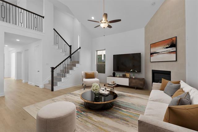 MLS# 20999466 - Built by Coventry Homes - Const. Completed Nov 15 2025 ~ Step into contemporary elegance with this stunning two-story home, perfectly positioned on a large corner lot in the vibrant Pecan Square community. Boasting a modern exterior elevation and sleek contemporary color palette, this home offers eye-catching curb appeal and stylish design inside and out. Designed for modern living, the open-concept floor plan features soaring ceilings that create a bright and spacious atmosphere throughout the main living areas. The heart of the home is an expansive great room that flows seamlessly into a designer kitchen, complete with premium finishes, an oversized island, and ample storage—ideal for both casual meals and entertaining guests. This home includes 4 spacious bedrooms and 3 full bathrooms, with thoughtful separation for privacy and comfort. A dedicated study provides the perfect work-from-home space, while the upstairs game room offers a flexible area for play, media, or relaxation. Don't miss this opportunity - visit today!