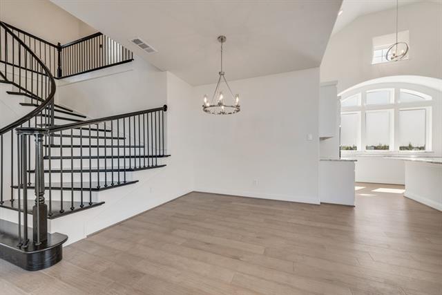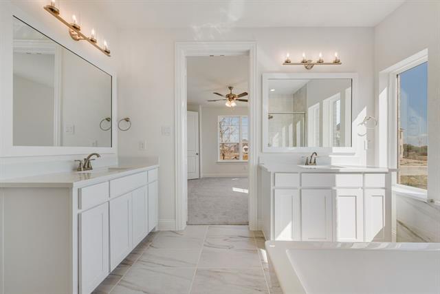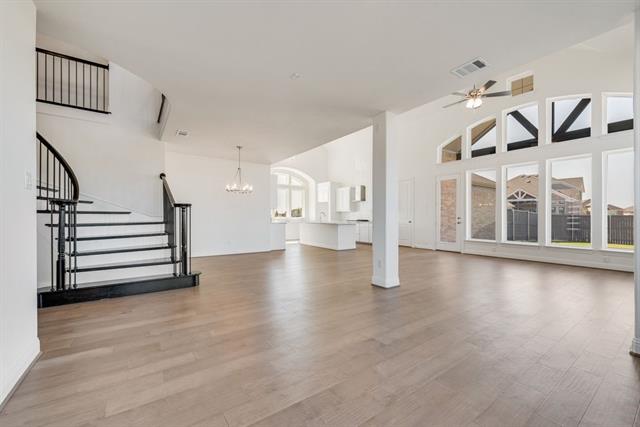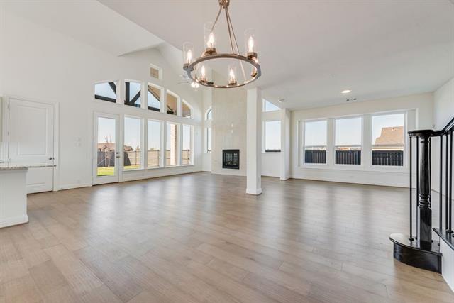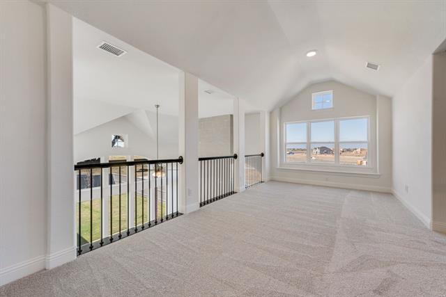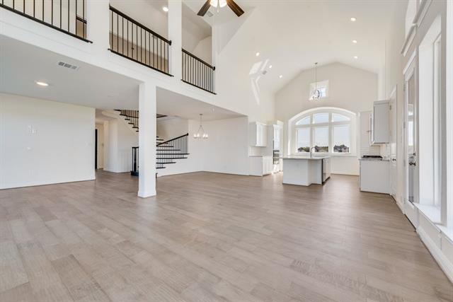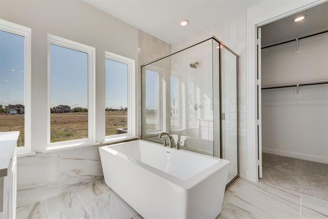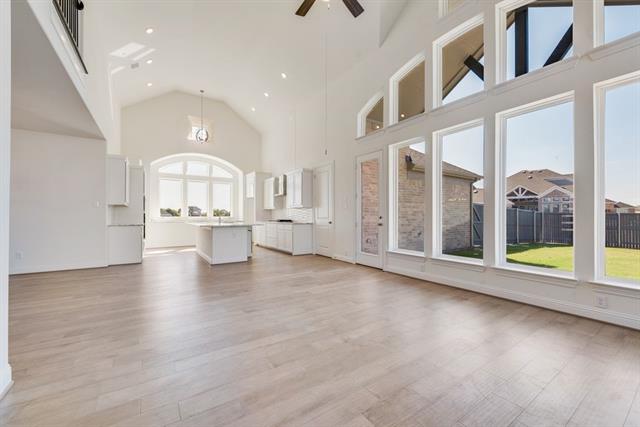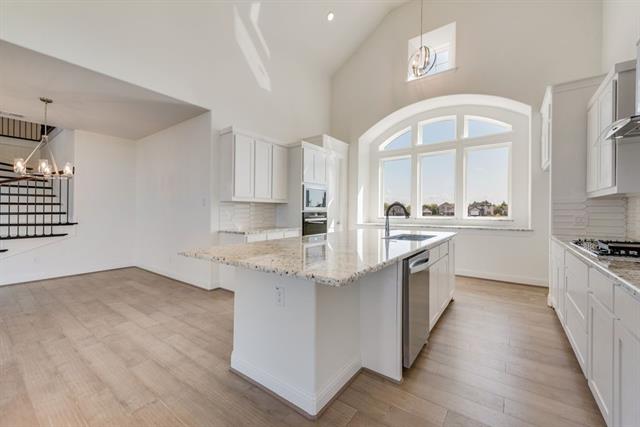 New Grand Home in super fun Prairie Ridge with neighborhood pool, miles of trails, spectacular playground & parks! JUST Completed - walk to trail system, parks & Pool. East facing homesite. Modern finishes with full oak staircase w wrought iron spindles, wood floors, 8 ft doors, rocker switches & thick door casing & trim. Vaulted family room has 2 story tiled fireplace that is open to covered back patio ready to entertain. Downstairs Media Room or Den wired for surround sound & flat screen TV. Downstairs Guest Bedroom or a Private Home Office. Upstairs gameroom for the kids with 3 additional bedrooms. Large Chef's kitchen has granite slab tops, white Shaker cabinets, stainless steel appliances, gas cooktop, full bowl sink & island for family get togethers. Primary Bath has a free standing garden tub, separate his & her vanities w rectangle sinks & glass enclosed tiled shower. Security & Sprinkler systems. Energy Star Partner features include radiant barrier roof decking & R38 ceiling insulation for low energy bills!