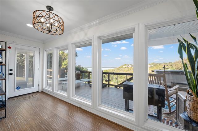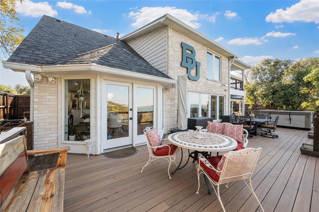 A rare opportunity to own a stunning hilltop property overlooking beautiful Lake Waco. This exceptional setting offers breathtaking, unobstructed views that stretch for miles, creating a peaceful backdrop you’ll enjoy every day. Perched above it all, the home provides outstanding privacy and a true sense of retreat while still being conveniently located. Whether you’re watching sunrise over the water or relaxing at sunset, this one-of-a-kind property delivers scenic beauty, serenity, and an elevated lifestyle that’s hard to find. Step inside to witness the breathtaking lake views that greet you from every room, providing a constant reminder of your scenic surroundings. The well-appointed kitchen serves as the heart of the home, featuring a spacious island and a gas cooktop, perfect for culinary enthusiasts and casual cooks alike. Its open layout ensures seamless entertainment options, leading to a cozy living environment. The primary suite is designed as a private retreat, boasting a spa-like bathroom experience. The upgraded shower offers an oasis of relaxation, reminiscent of luxury day spas, ensuring a daily pampering routine. The additional bedrooms and bathrooms are thoughtfully designed providing comfort and privacy for residents and guests. Extend your living space outdoors with an expansive deck that caters to the ultimate entertainment experience. Equipped with a grill and a fire pit, it's an ideal setting for hosting gatherings under the starlit Texas sky. For moments of sheer relaxation, the hot tub with its stunning lake view will become your personal haven.